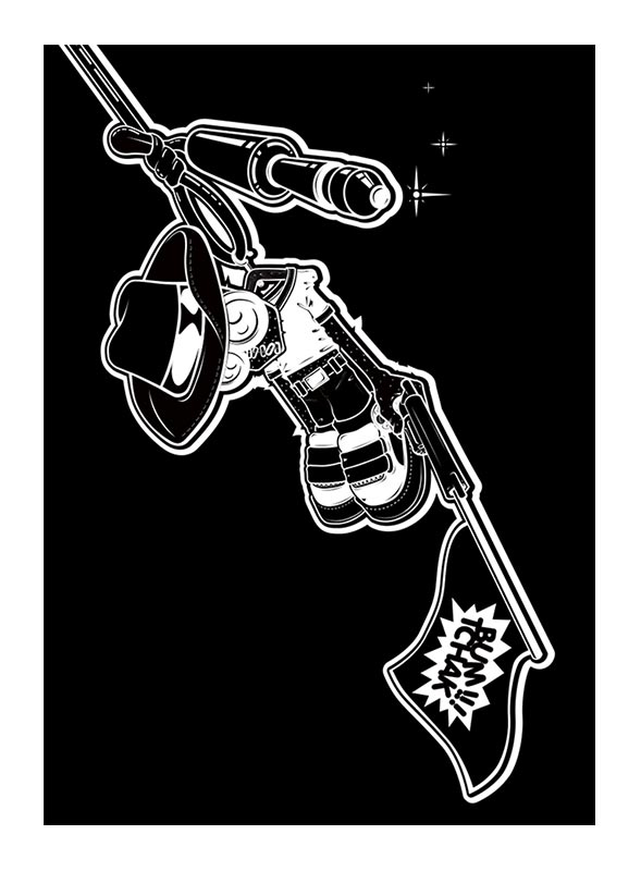 Character & Print Designs (flyers, posters, canvas & Shirts) for an drum’n’bass event series that I run as a promoter & DJ at the legendary Muffatcafé in Munich Germany called WANTED. The ensemble is based on an especially developped character. A sort of cowboy puppet with a stapled thorny face and big button eyes. The mascot is still nameless.